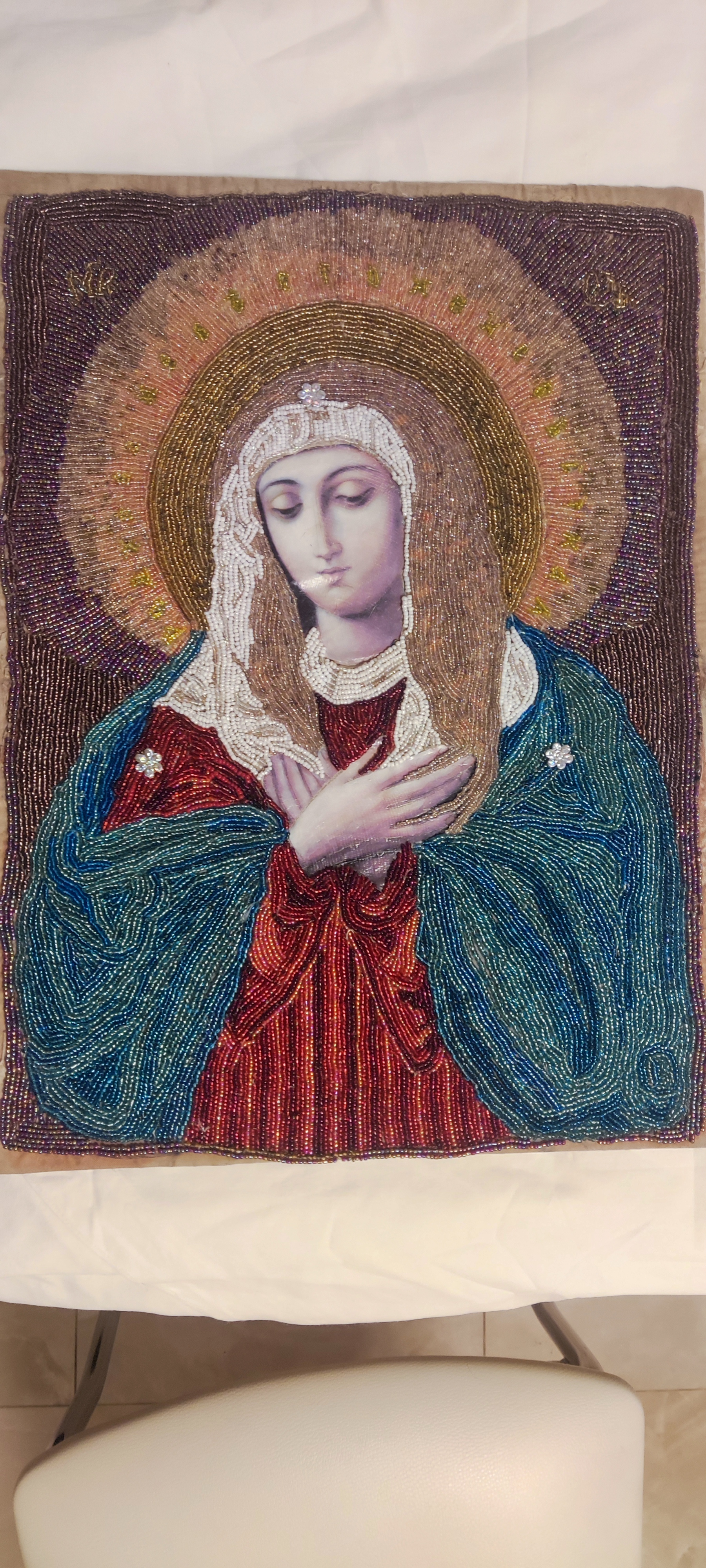 Приобрел недавно шитые бисером иконы. На мой взгляд ,не профессиональный, очень качественное шитье. Не поможете с оценкой данной работы? Покупал у перекупщиков, истори данных икон нет. Есть подпись на рамке и дата 1942г, рамка видимо не родная, так как материалы иконы старше. Буду признателен за любую информацию. У меня дома есть некоторое кол-во старинных икон, все письмо. zlataya,