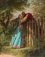 На нашей картине как раз запечатлён момент на балконе, когда девушке удалось погасить свечу своего кавалера, и сохранить пламя своей свечи. Она бережно прикрывает его рукой. А вот юноше, увы, не повезло. Пламя его свечи буквально несколько секунд назад погасло. Видно как дымок тонкой струйкой поднимается вверх. Может быть девушке удалось погасить его свечу, когда он этого не ожидал. Посмотрите на ее улыбку и задорный взгляд.