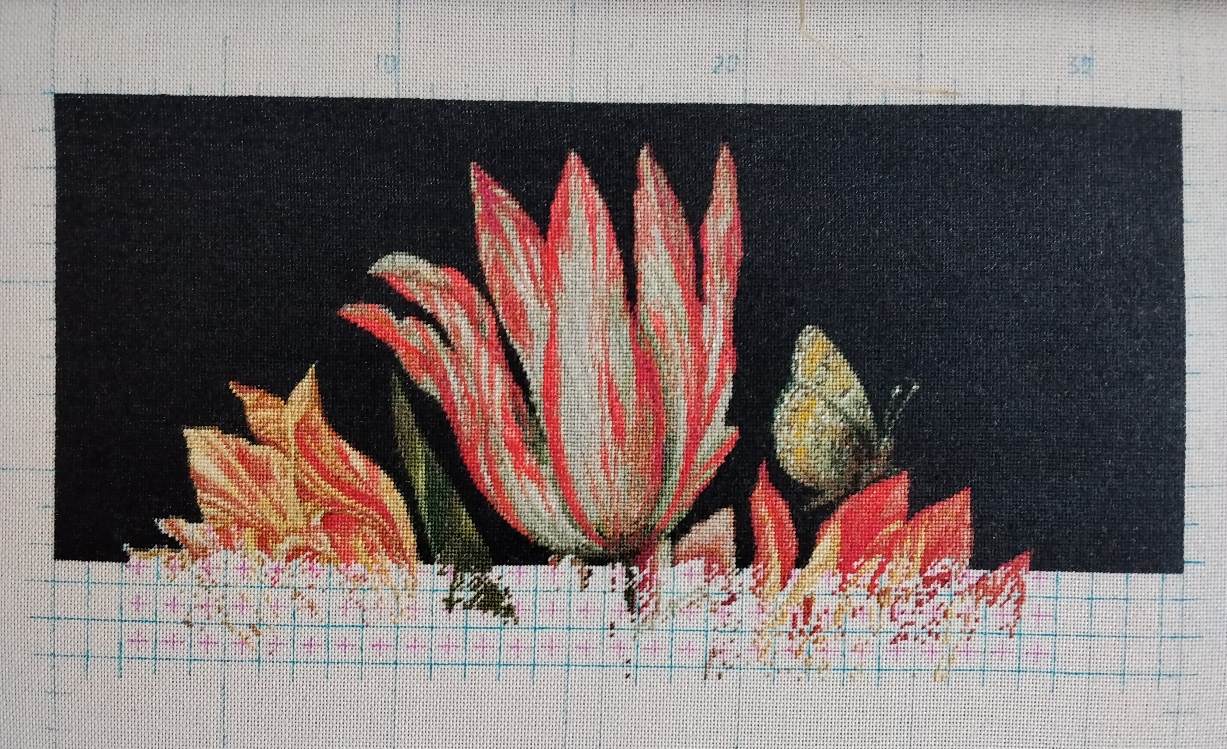 | Здравствуйте! ЛФ1030 "Попугайные тюльпаны" 1/4 работы отшита.