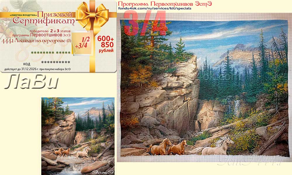 | Ларисины 444,1 Лошади преодолели переправу и вышли на финишную прямую! (Лариса, Ирина, как было бы интересно, если б ваши лошадки одновременно пришли к финишу на февральскую выставку 2026г! У нас был бы большой вариант на большой канве и малый вариант на мелкой канве! Как говорится: на любой вкус!)