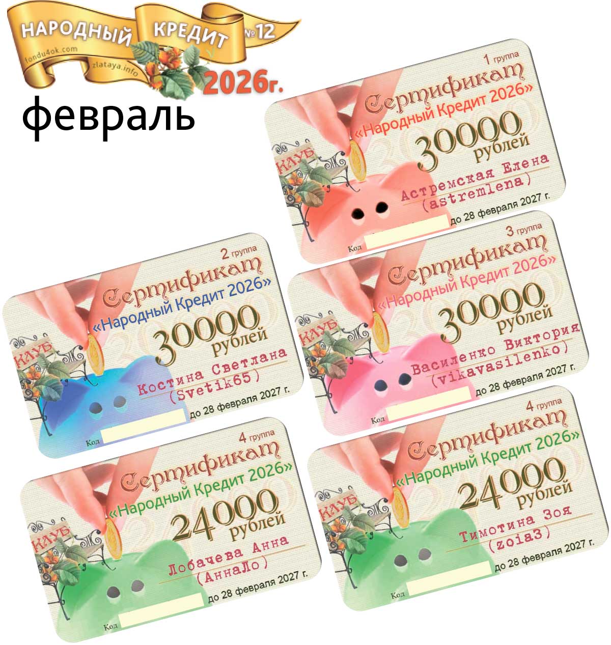 3. По жребию или полюбовно устанавливается очередность получения Народного Кредита. Новички получают сертификат только в ноябре или декабре, право выбора месяца не имеют.