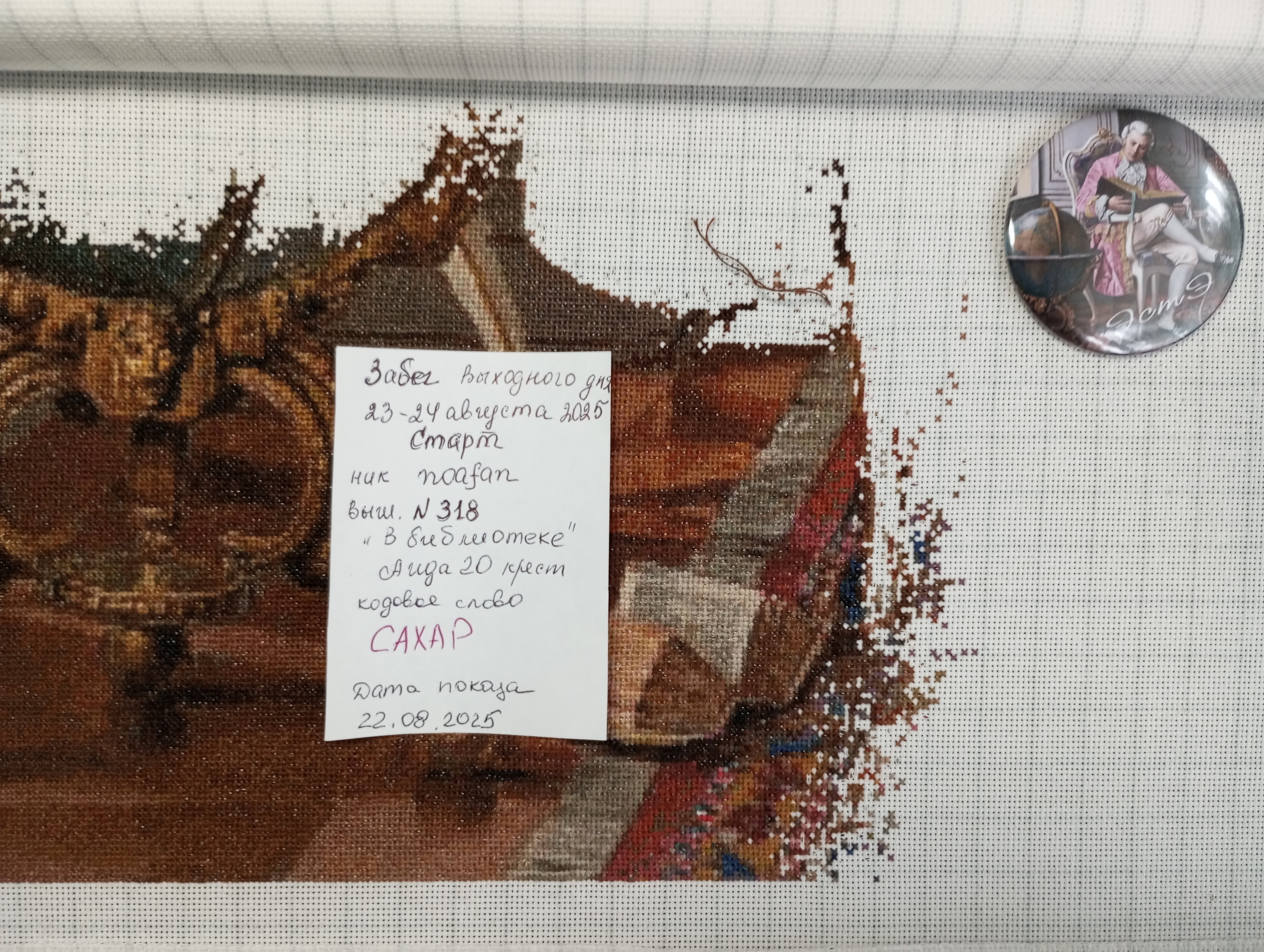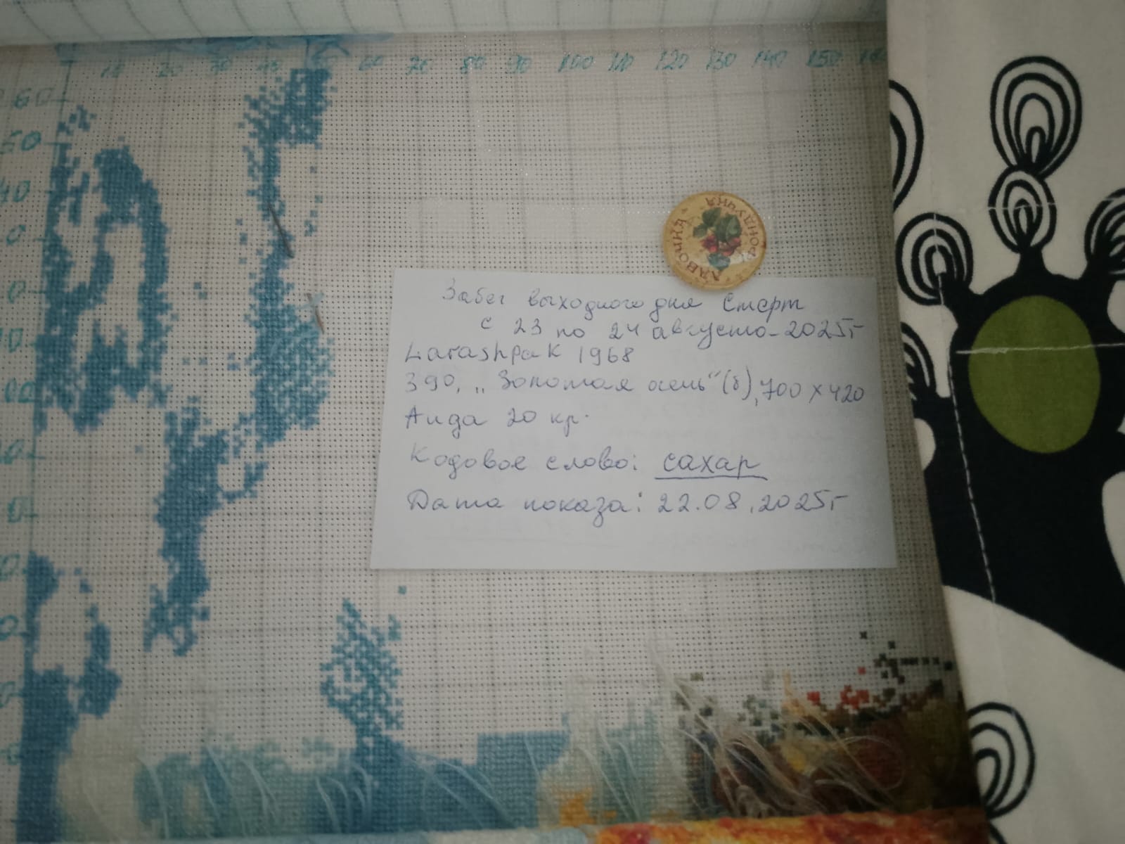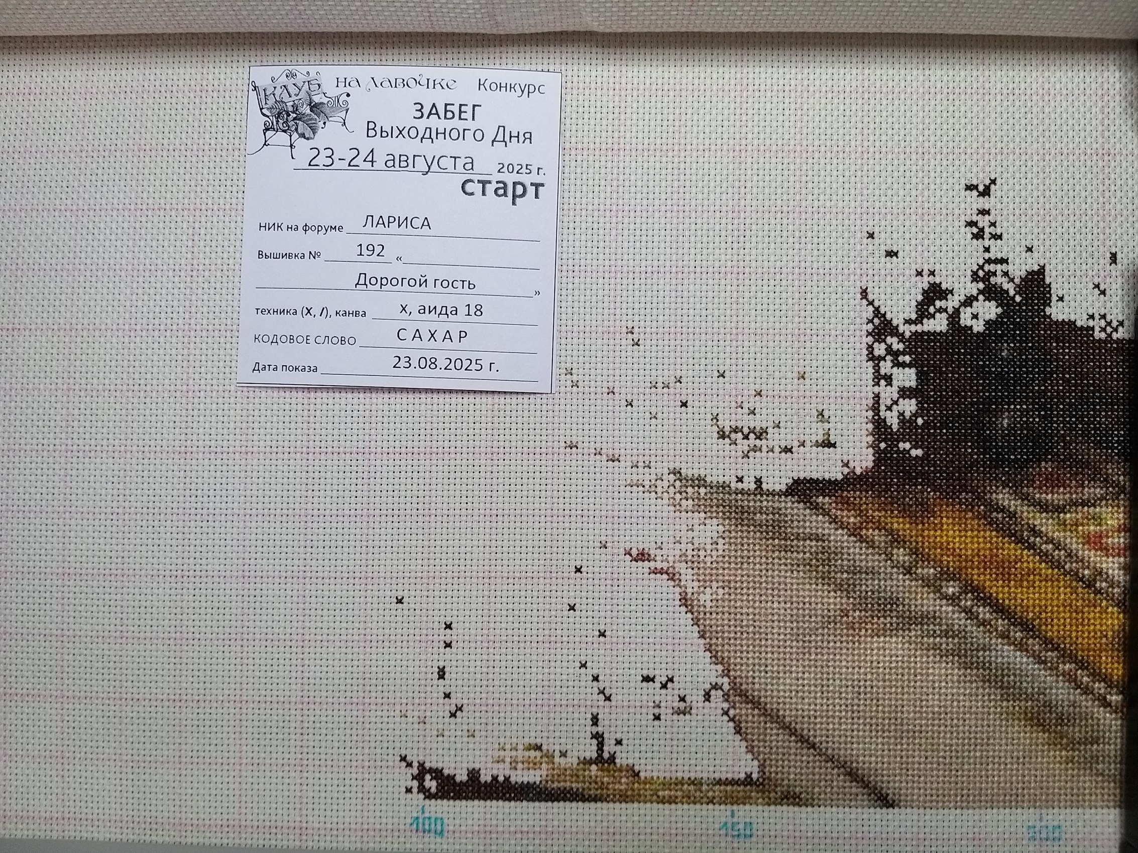 5. ЗАПОЛНЕНИЕ Бирки и ПРЕДСТАВЛЕНИЕ Конкурсного ФОТО Кодовое слово, дата и остальные данные соответствующие отчетному дню должны быть написаны (напечатаны) на бумаге (бланке-образце), и лист-бирка с заполненными данными должен быть сфотографирован вместе с вышивкой. Фотография должна быть четкой, с достаточным разрешением для прочтения бирки и видимым участком вышитого за отчетный период. Внимание! НЕЛЬЗЯ в графическом редакторе на компьютере вносить правку данных бирки на отчетной фотографии! такие фото к отчету не принимаются.