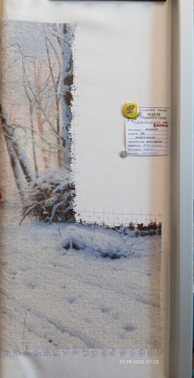 Меня зовут Наталья. Вышиваю 228 "Зимой в лесу (м)" Вышито 203 "Магнолия на красном бархате", 178 "Сливы, фрукты и каштан"