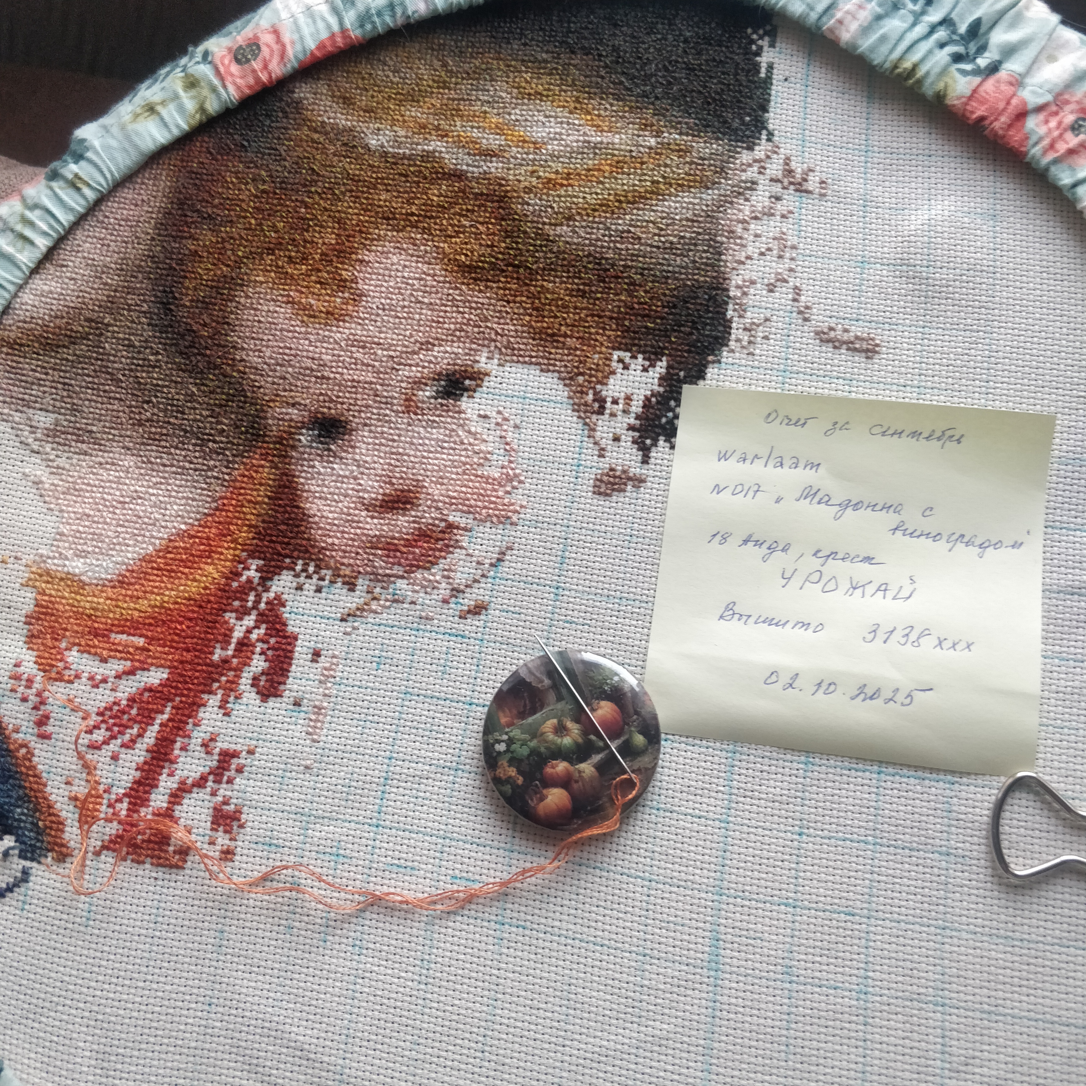 | Отчёт за сентябрь. Вышито 18000 крестиков.
