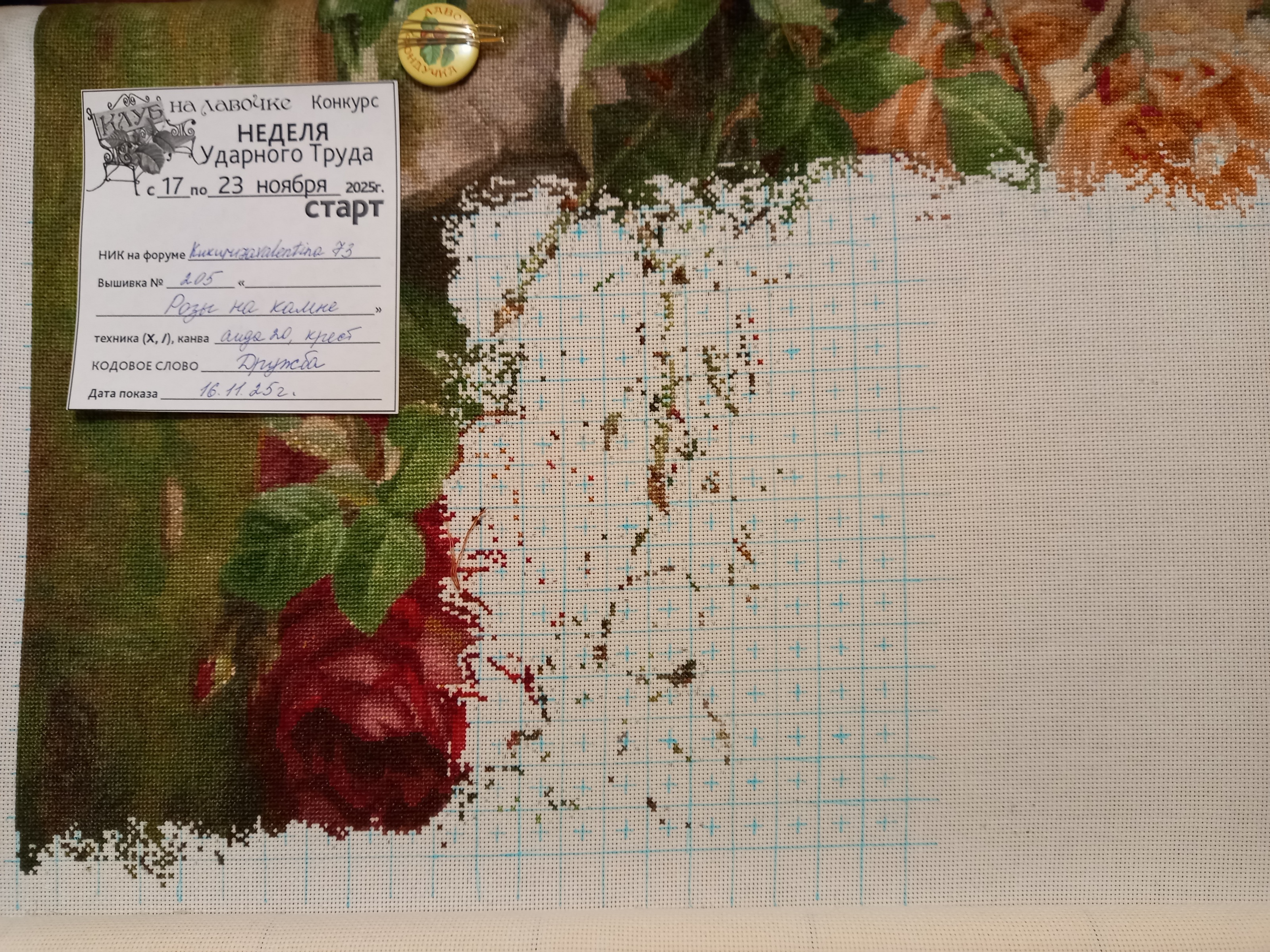 ВНИМАНИЕ! Конкурсные фото должны быть четкими, с достаточным разрешением для прочтения бирки. Стартовое фото - с видимым свободным полем канвы для последующей зашивки в рамках конкурса. На финальной фотографии должен быть показан участок вышитого за отчетный период.