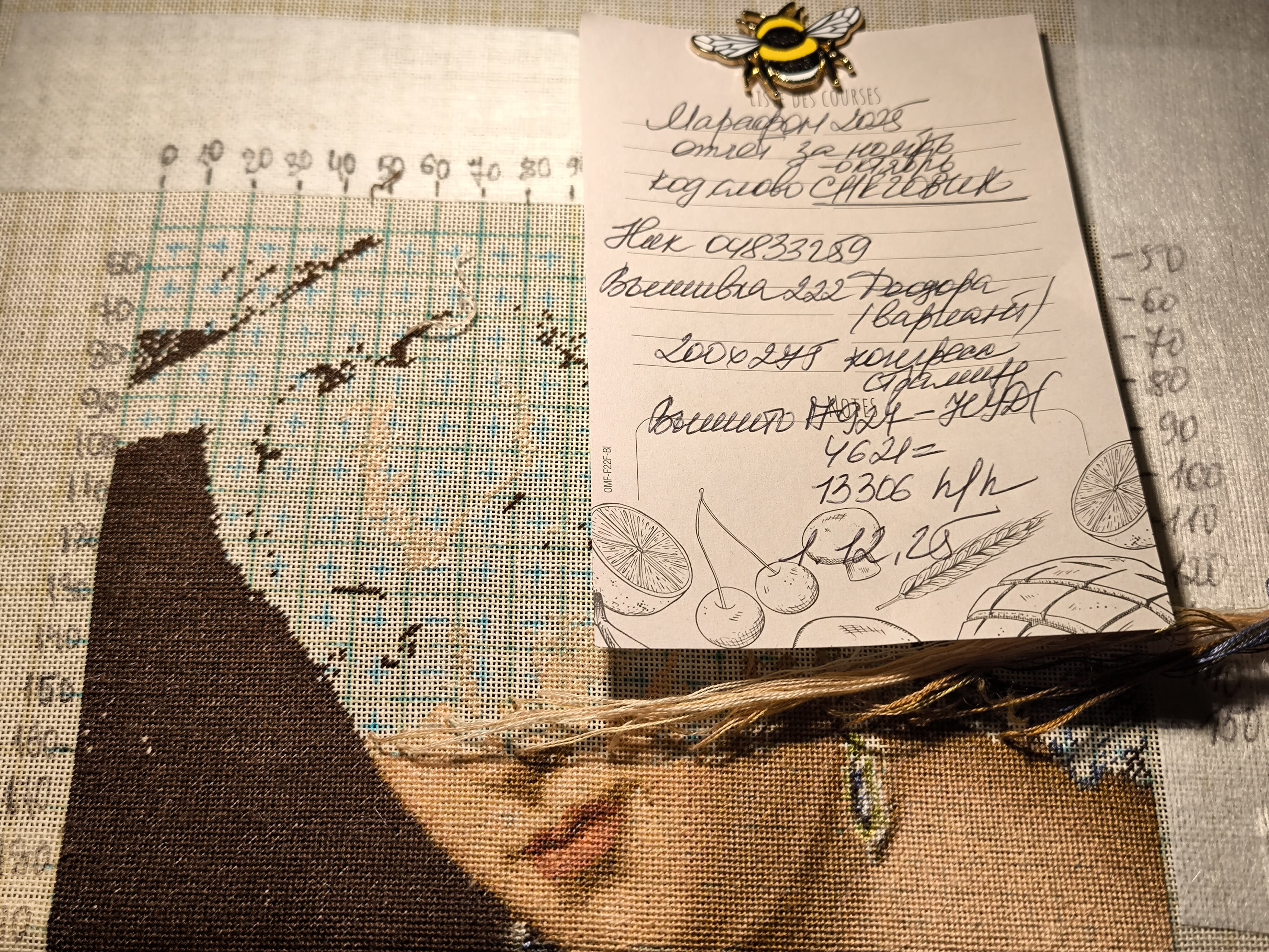Кодовое слово, дата и остальные данные соответствующие отчетному дню должны быть написаны (напечатаны) на бумаге (бланке-образце), и лист-бирка с заполненными данными должен быть сфотографирован вместе с вышивкой.