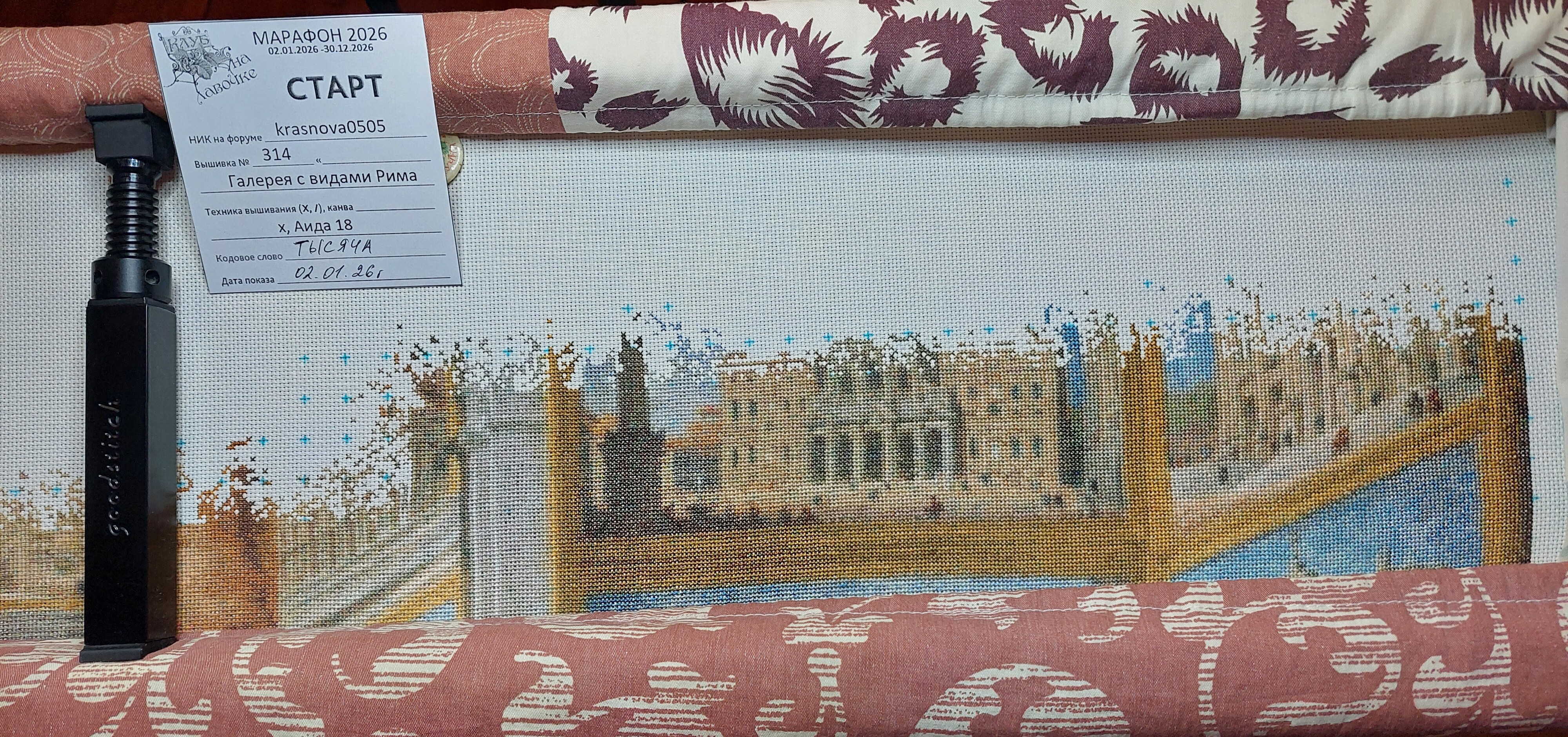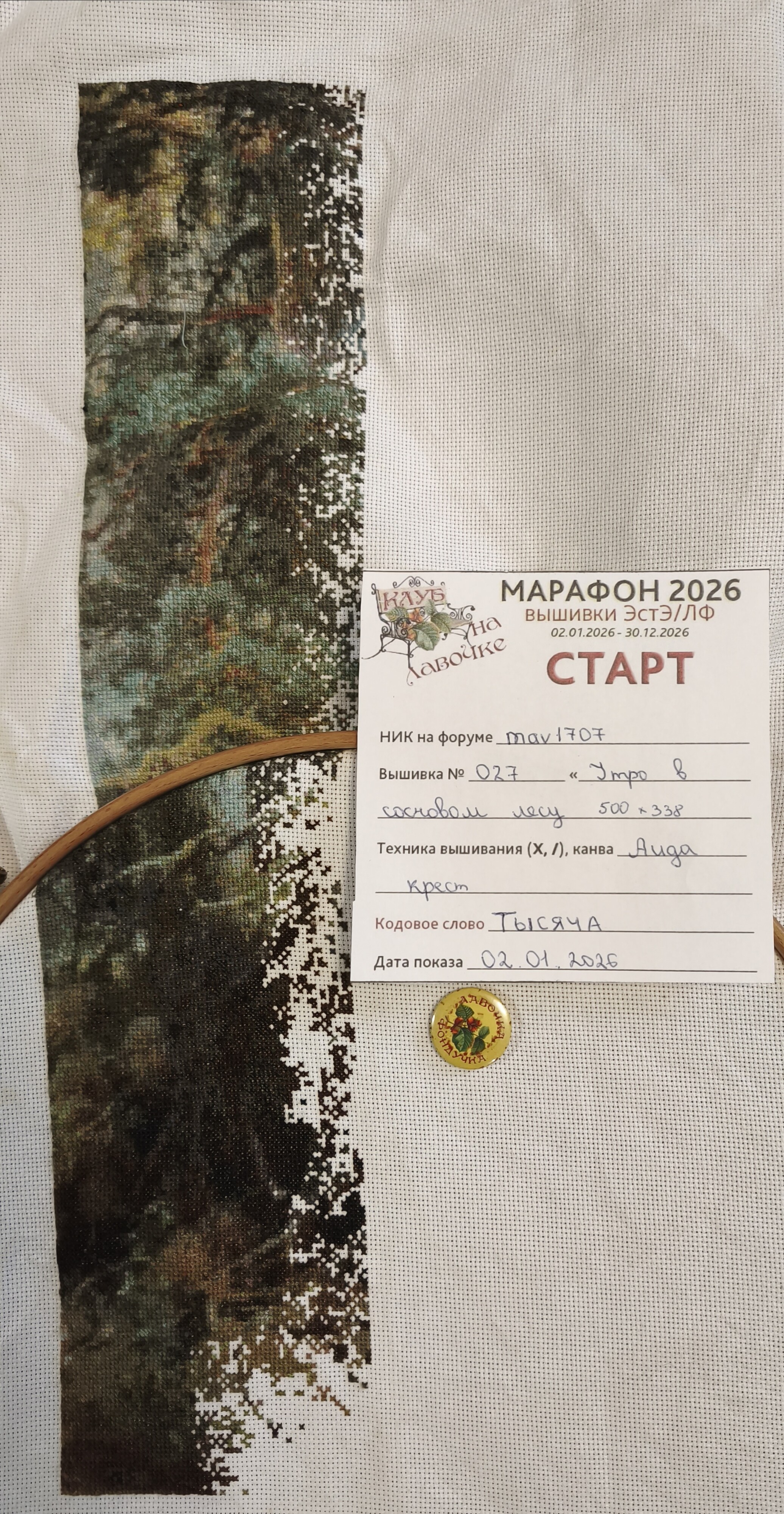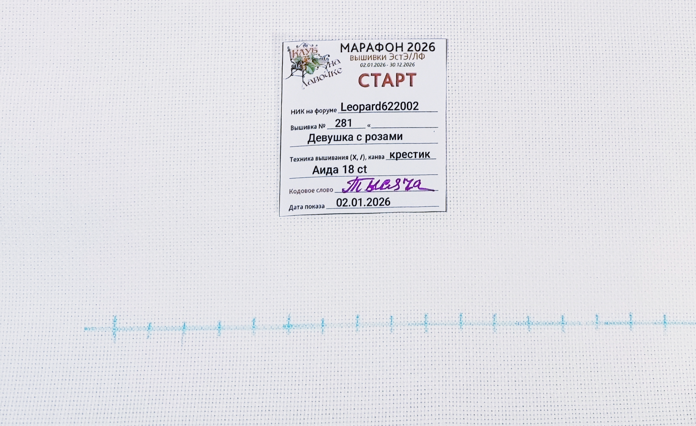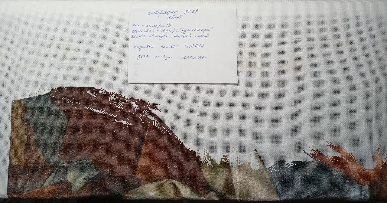 | Дорогие участники форума, члены и кандидаты Клуба-на-лавочке!Приглашаем☼ всех участников марафона 2025, ☼ всех начинающих, недавно начавших и давно вышивающих ЭстЭ и ЛФ, ☼ всех кто хочет получить дополнительный стимул к быстрому вышиванию, ☼ получить реальные и виртуальные конкурсные призы, ☼ всех, кто хочет вышивать в хорошей компании к участию в ИГРЕ-КОНКУРСЕ МАРАФОН 2026!Внимание! Игра проводится на ФОРУМЕ. Все отчетные конкурсные фото обязательно должны быть показаны в соответствующей специальной теме на форуме в положенное время. На почту, в соцсетях, телефонах и другими способами конкурсные фото не принимаются. Показ фото только на форуме! Если по техническим или каким-либо другим причинам вы не можете загрузить свое фото на форум, позаботьтесь, пожалуйста переслать свое фото любому другому участнику чтобы тот в положенное время в нужной теме показал ваше отчетное фото. Помимо ведущего, Ваш своевременный отчет должны видеть ВСЕ участники конкурса и все зрители наблюдающие за игрой.ПРАВИЛА и условия игрыуже привычные для наших участников, аналогичны условиям Марафона 2025. Запись продлится до 12.00 (мск) 2 января 2026 годаформа записи: НИК на форуме, номер и название вышивки, размер, ткань, техника (крестик или петит/полукрест) с 12 часов 02 января до 24 часов 09 января 2026 гПоказываем в теме Стартовое фото вышивки с биркой (бирку можно распечатать и заполнить, а можно сделать самим по образцу):  Кодовое слово _ТЫСЯЧА_объявлено 2 января 2026 г. в 12.00(мск)