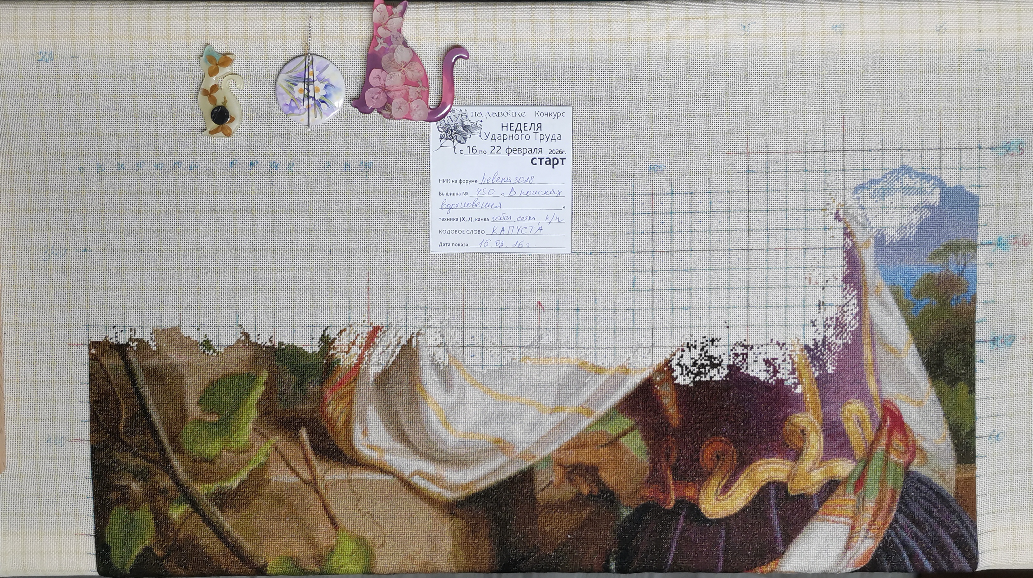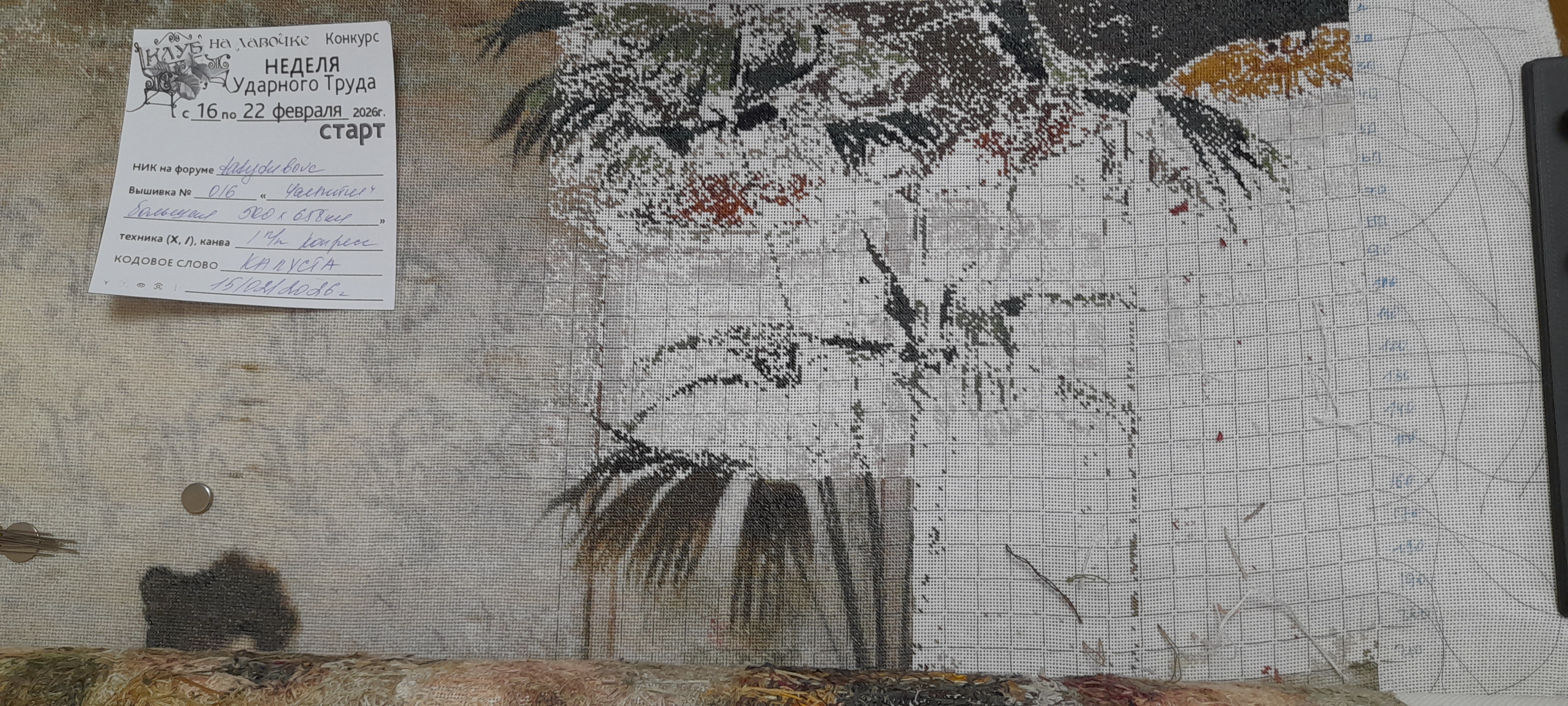 Цитата Правила конкурса (  ) 5. ЗАПОЛНЕНИЕ Бирки и ПРЕДСТАВЛЕНИЕ Конкурсного ФОТО Кодовое слово, дата и остальные данные соответствующие отчетному дню должны быть написаны (напечатаны) на бумаге (бланке-образце), и лист-бирка с заполненными данными должен быть сфотографирован вместе с вышивкой. Конкурсные фото должны быть четкими, с достаточным разрешением для прочтения бирки. Стартовое фото - с видимым свободным полем канвы для последующей зашивки в рамках конкурса. На финальной фотографии должен быть показан участок вышитого за отчетный период. Внимание! НЕЛЬЗЯ в графическом редакторе на компьютере вносить правку данных бирки на отчетной фотографии! такие фото к отчету не принимаются.