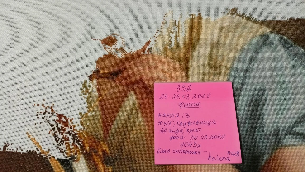 Вниманию "марафонцев" участвующих в конкурсе Выходного Дня с той же вышивкой. Количество крестиков (петинок) вышитых и показанных в игре "Забег Выходного Дня" в случае выигрыша (призовых 1, 2 или 3 места) не учитываются в Марафоне и вычитаются из месячного итога при отчете в Марафоне за настоящий этап. ___________________________________________________________