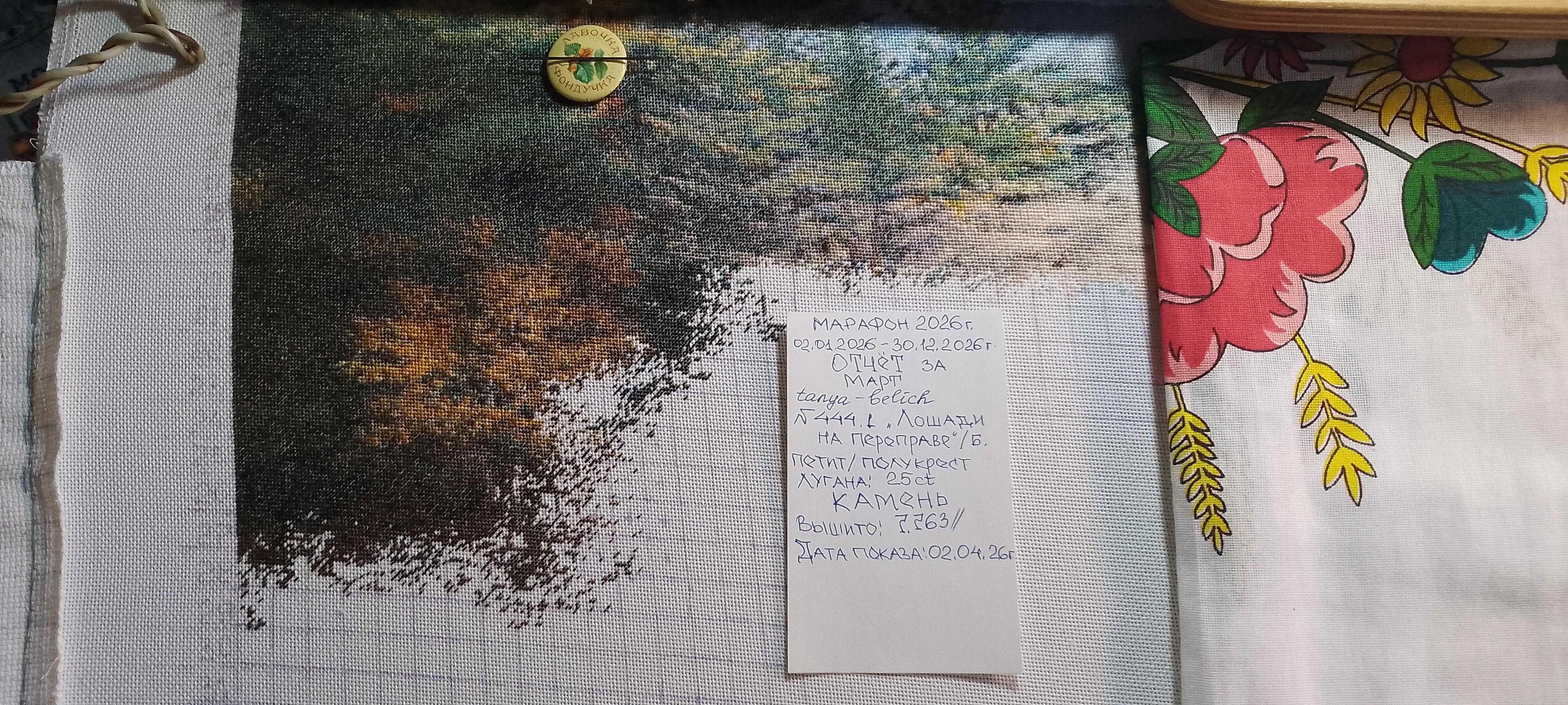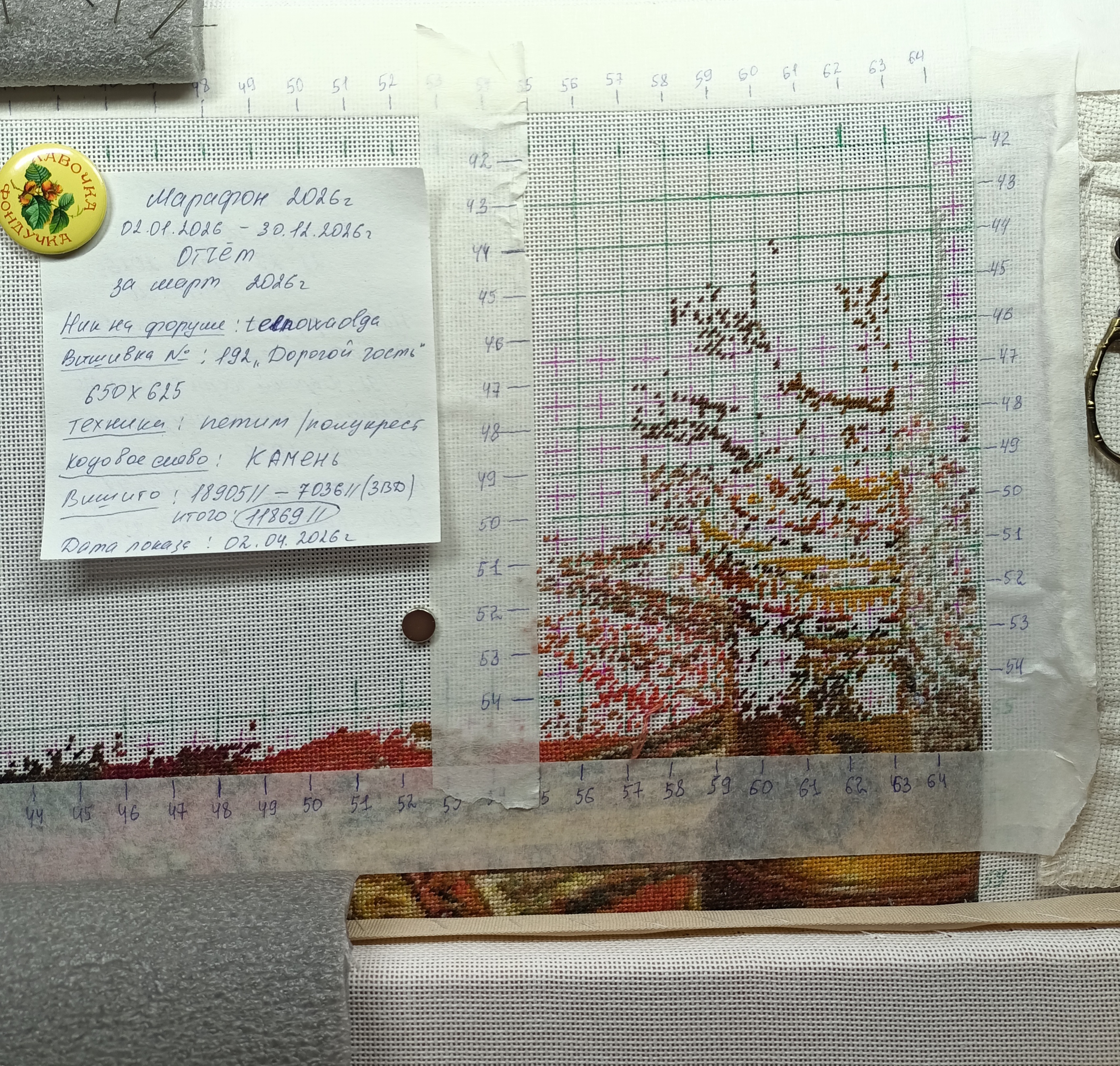 | Добрый день! За март вышито 12003 крестика. Была перемотка.