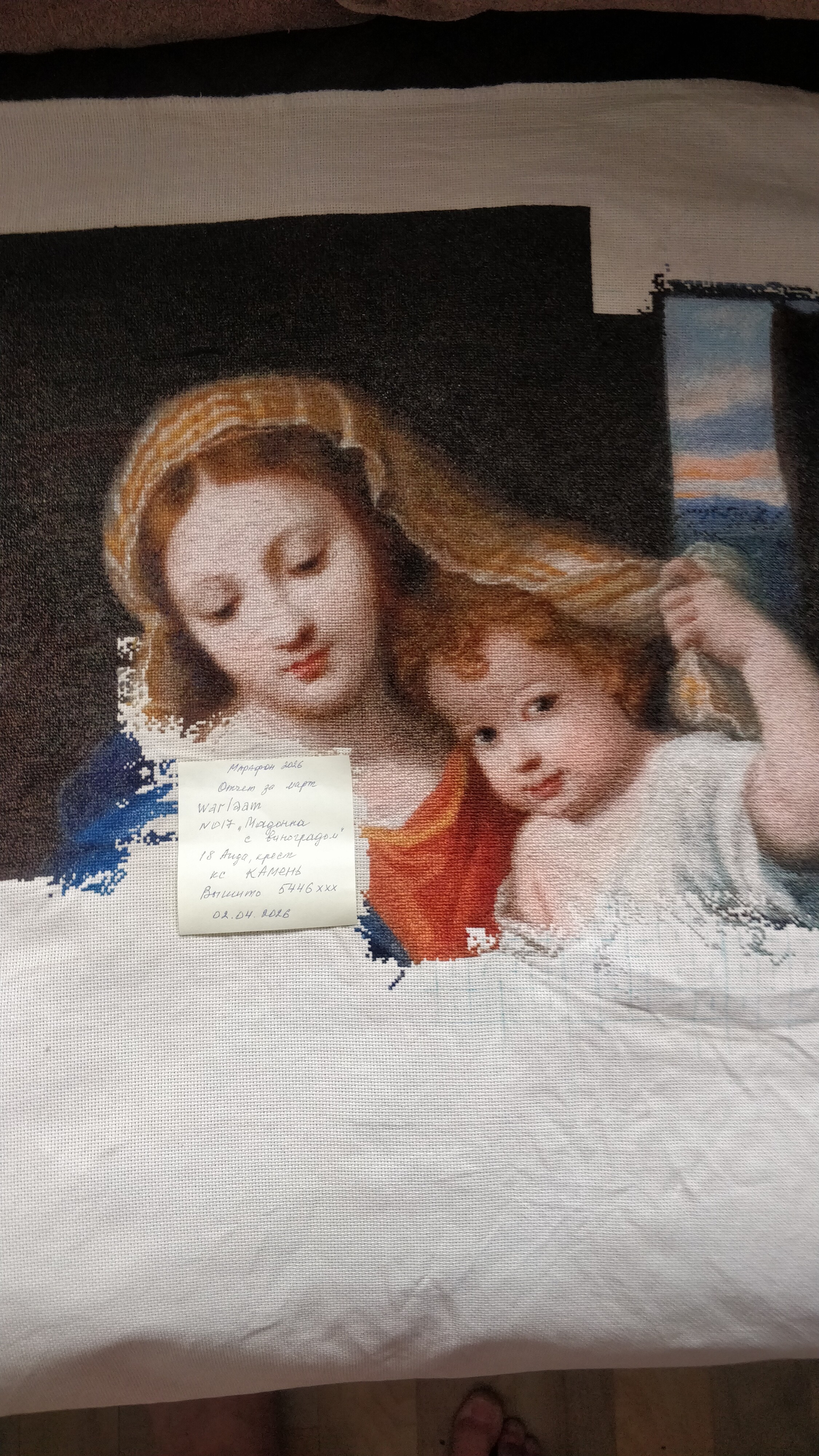 | Доброе утро! Отчёт за март #017"Мадонна с виноградом" 18Аида, крест Вышито 5446 крестиков
