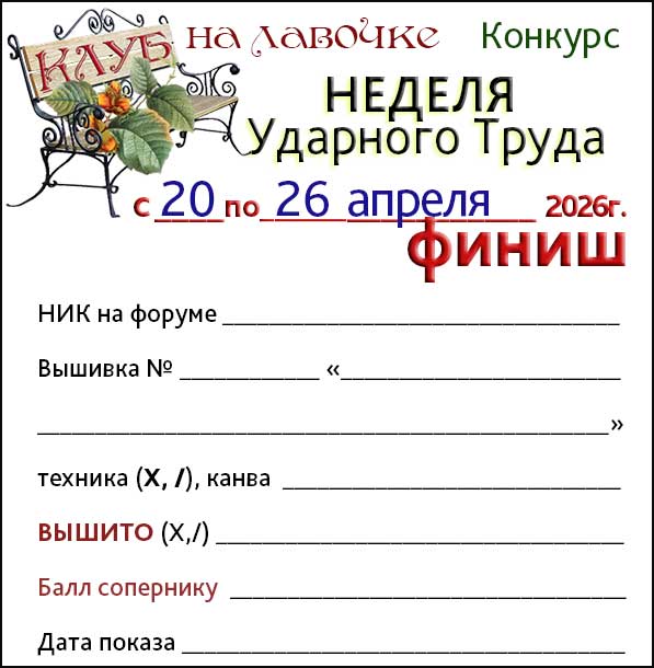 Количество крестиков (петинок) вышитых и показанных в игре "Неделя ударного труда" в случае выигрыша (призовых 1, 2 или 3 места) не учитываются в Марафоне и вычитаются из месячного итога при отчете в Марафоне за настоящий этап.