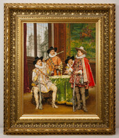 102 «Мушкетеры», художника Адольфа-Александра Лесреля. Мы показали на выставке две вышитых по одной и той же схемы картины, но вышивки на разной канве: мелкой и крупной. И мне так жаль, что вы не смогли воочию увидеть их и сравнить вживую…