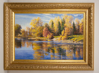 в картине ощущается движение, рябь на воде, и даже легкий морозец… Наши глаза как будто слышат дыхание воды, шелест листвы и свет солнца в каждой ветке. Это последние деньки «праздничной осени» с ее буйством красок, наступает момент тихого прощания. Всё здесь говорит о круговороте — о красоте, которая знает, что уйдёт, но не спешит. И потому особенно светла
