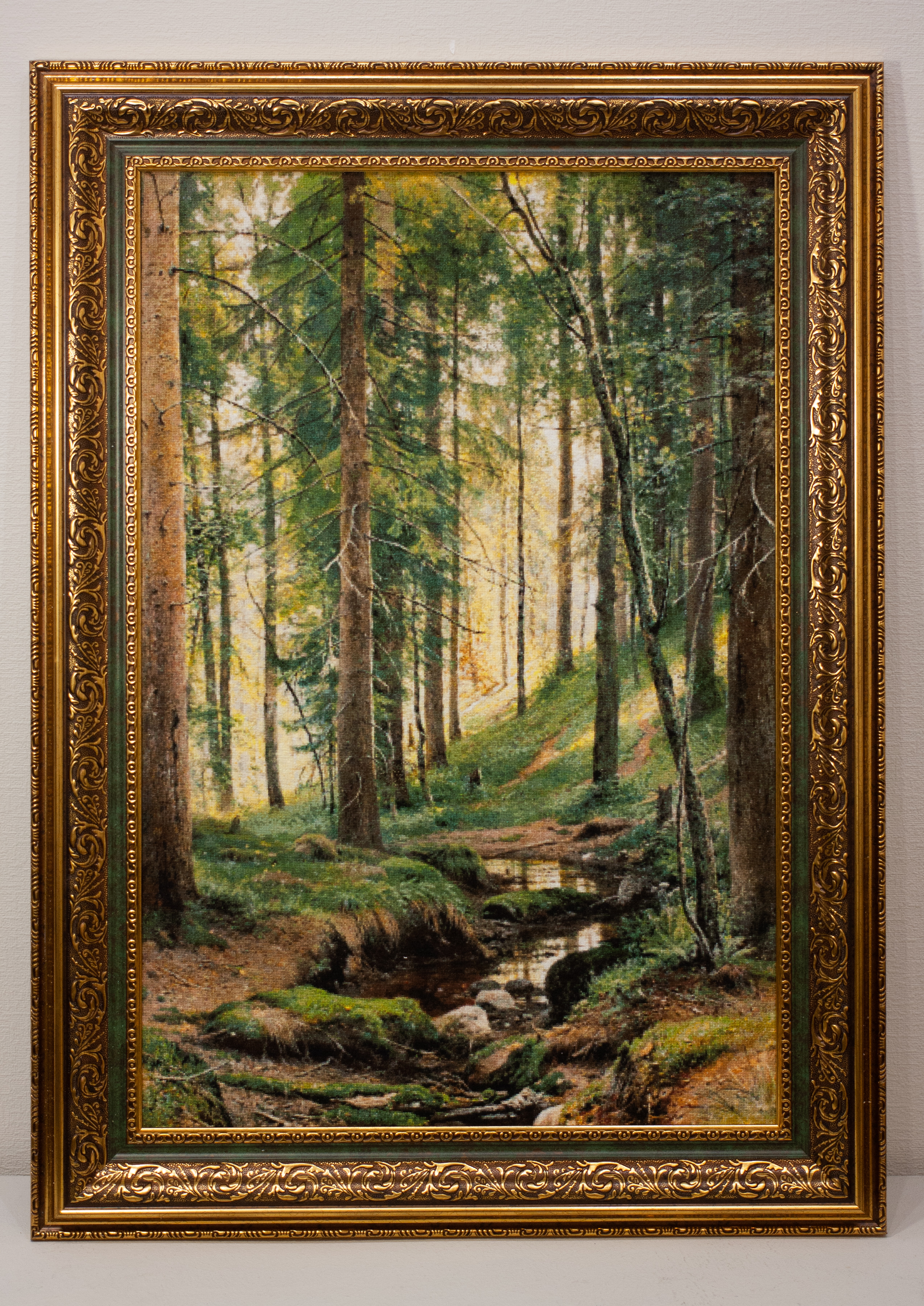 126 «Ручей в лесу» Ивана Шишкина вышила ИринаЛашина из Москвы. Не знаю, я не вышивала Шишкина… Но мне кажется, что шиться она будет также идеально, как написаны его картины – как песня! Мы сразу ощущаем дыхание живой, первозданной природы, чувствуем воздух, свет, влагу, тишину. И каждая детальбудто говорит: жизнь — в покое, вечность — в свете, а красота — в глазах смотрящего.