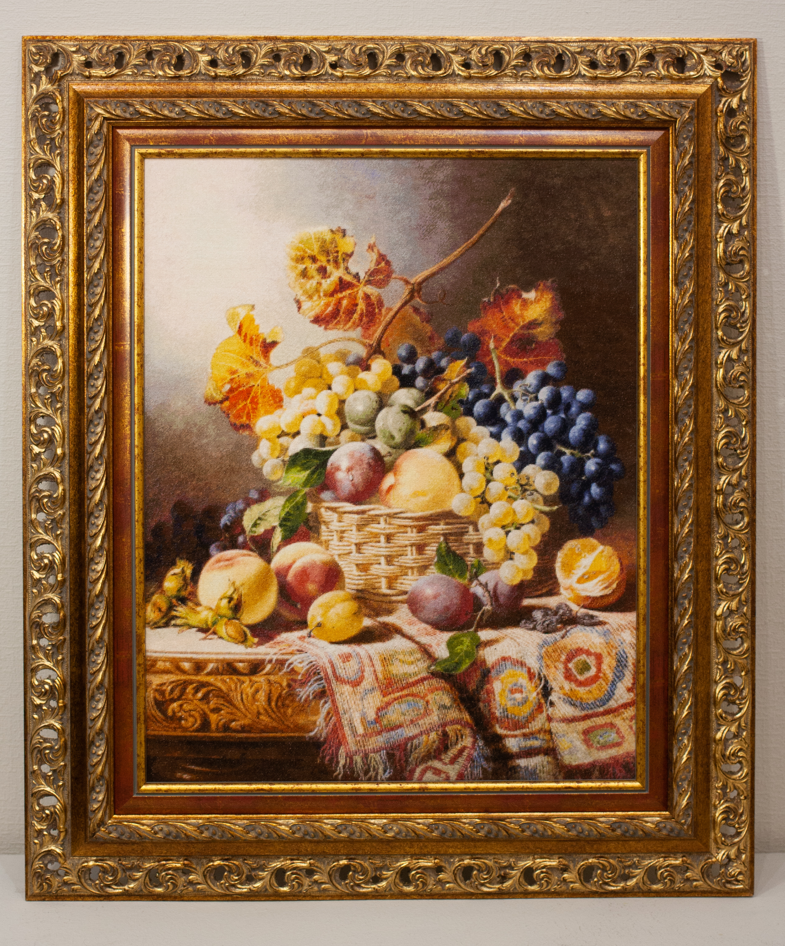 208 «Корзина с фруктами на ковровой скатерти»подарена Анна Лобачевой из Ленинградской области. Автор картины – Уильям Дэфилд. Очень советую вышивать сверху: там фон, веточки-листочки, ягодки-фрукты… а потом корзина! А потом стол!! А потом – скатерть!!! … Зато потом Вас будут спрашивать, как ты тканую скатерть сюда вставила? Эта изысканная композиция - почти театральная постановка света и формы,где каждый плод, каждая складка ткани живут по законам гармонии, будто музыка превращена в краску. И этот спектакль – как размышление о времени, которое, как вино в бокале, созревает и уходит, оставляя после себя послевкусие — сладкое и чуть грустное.