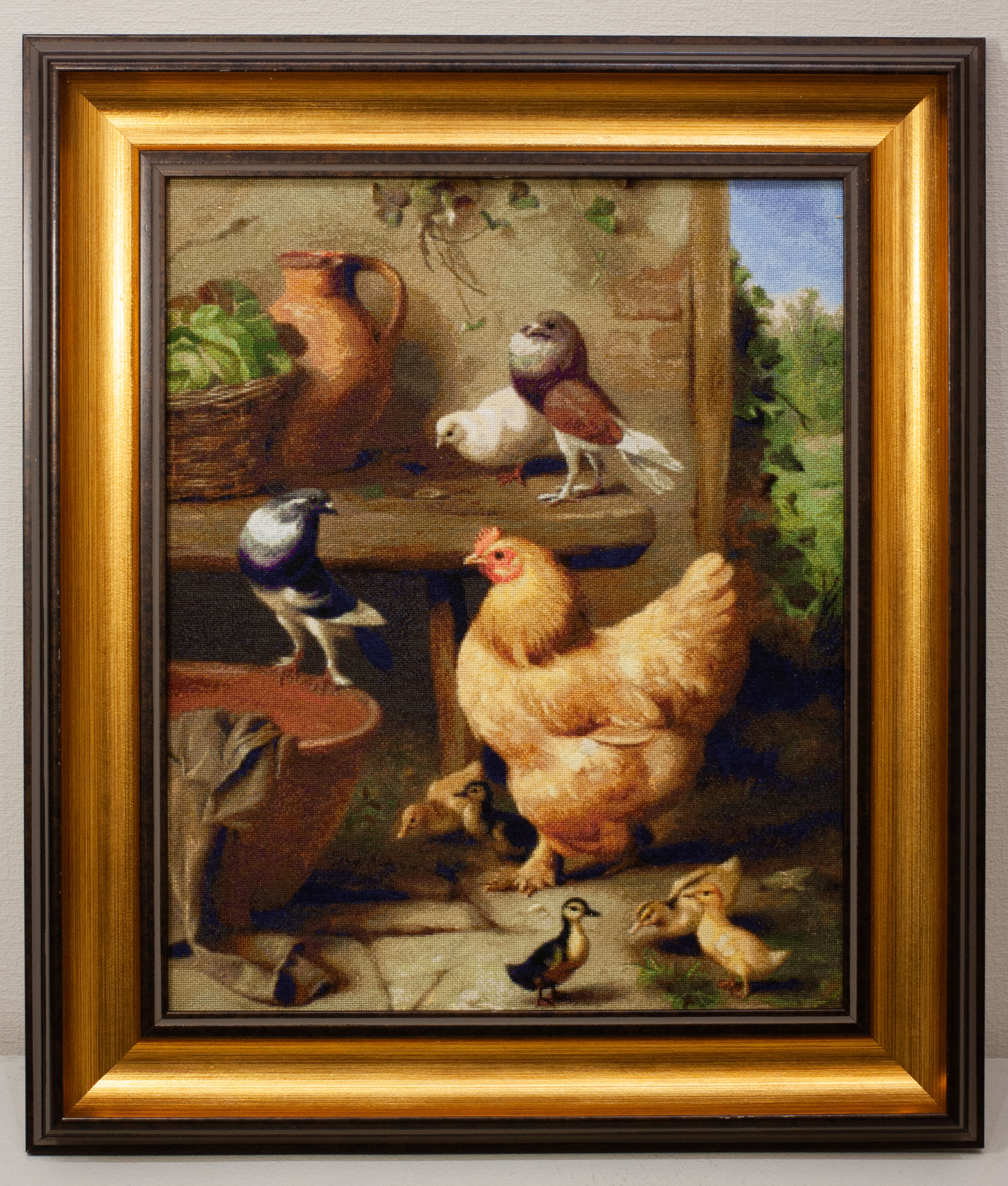 1013 «Птичий двор» по картине Эдгара Ханта подарилав Фонд «Лавочки» Светлана Горобец с Украины. Сложность умеренная, равномерно распределена по всей картине. Но глазки, клювы, лапки, гребешки – повнимательнее, пожалуйста .Эта картина будет напоминать о лете и звать вдеревню. И напоминать: счастье — не там, где блеск, а там, где утро начинается с крика петуха и лёгкого шороха пуха под крылом.