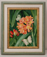 1029 «Кливия и белые бабочки» вышила Анна Смирнова,а написала Мэриэн Норт. Совсем не вижу сложностей для вышивки. Ну разве что тычинки, усики-лапки, да точки на крылышках бабочек.Редко натюрморты выглядят вот так: как будтозаглянули в самую чащу. Мэриэн Норт писала без искусственного украшательства: она не придумывала мир, а видела его в его истинной щедрости. И здесь, в этой картине, чувствуется её искренняя радость перед жизнью — радость наблюдателя, который благодарен даже за возможность смотреть.