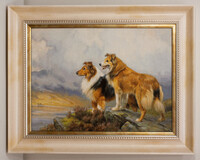 127 Колли – по картине Райта Баркера вышила для нашего фонда Полина Чернышова из Нижнего Новгорода. Посмотрите, какие настоящие, живые собаки! Особых проблем при вшивании не будет: очень спокойный фон, немножко посложнее шерсть и заросли вереска, и будьте очень внимательны при вышивании мордочек! Картина словно пропитана ветром. Кажется, он колышет шерсть, несёт запах вереска и холода. В картине нет сентиментальности, животные изображены так, как другие художники писали героев. И действительно, в этих двух колли есть что-то рыцарское: благородство, тишина и готовность идти вперёд, куда бы ни позвал хозяин.