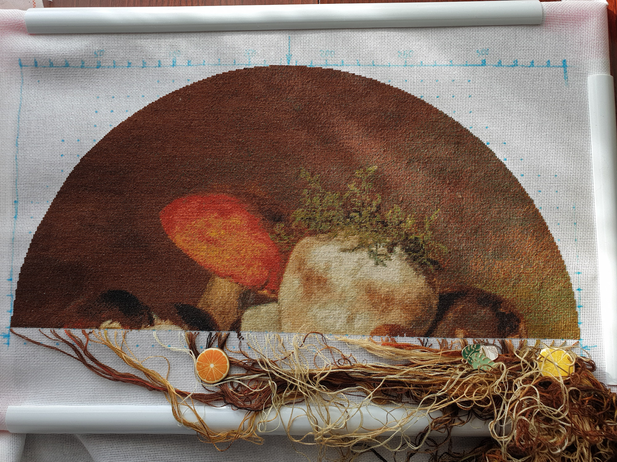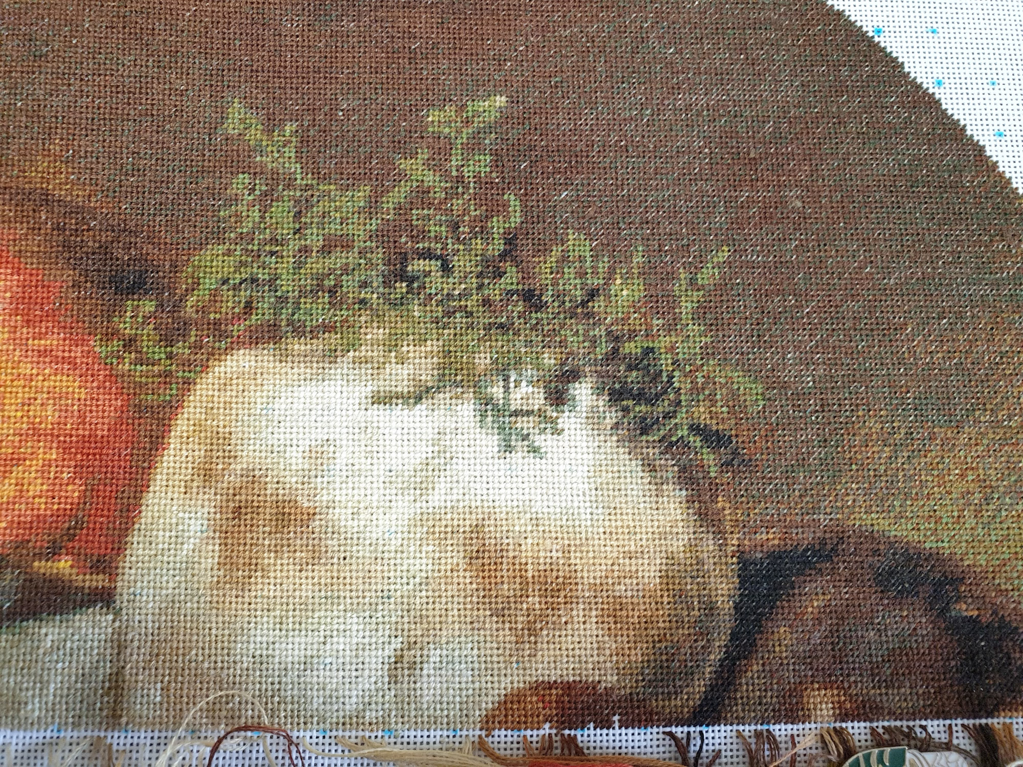 | Спасибо, Оксана. Шьется по-разному: много, конечно, легких мест, а вот с мхом на ножке пришлось повозиться. Да, не 100 цветов в 100 клеточках, как у пейзажей - у меня всего 72 цвета, но цветов 25 там задействовано. В целом можно рекомендовать как многоцветку для начинающих. А у меня случилась половина.