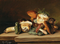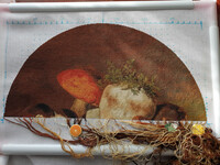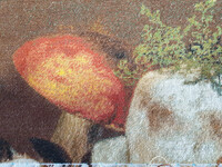 | Мне тоже грибы понравились, все вышивки забросила, чтобы их вышить. Дошью - повешу у родителей на даче. Мне только не очень черные места нравятся, как будто подгорелые. Да и левый боровичок должен бвть потемнее, красно-коричневым, а он с фоном сливается. Вообще оригинал картины выглядит вот так.